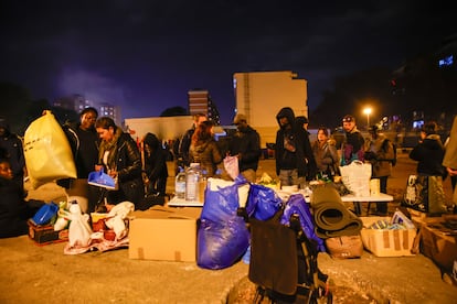 La noche de este viernes vuelve a ser, como la del miércoles, una incógnita. El desalojo del B9 no ha puesto fin al problema de los migrantes que viven en condiciones de miseria. En todo caso, los ha agravado. Un buen número de ellos, unos 150 según el Ayuntamiento, se marcharon días antes del desahucio y estarían, siempre según el consistorio, “fuera” de Badalona. Otros se han buscado la vida en asentamientos ya existentes. Pero un centenar permaneció en Badalona y a escasos metros del instituto. La plaza ha sido, durante dos noches, su hogar, un nuevo asentamiento al aire libre. Al anochecer del jueves, la imagen era desoladora. Algunos migrantes se protegían del frío alrededor de una hoguera. Otros paseaban entre las tiendas de campaña que les han prestado. Los hay que regresaban de recoger chatarra, principal ocupación de buena parte de los miembros de este colectivo, muchos de ellos en situación irregular en España. Younouss contemplaba la escena esa tarde con resignación: “¿De verdad pensaban que echando a la gente íbamos a desaparecer? Pues no. Mira esto. ¿Qué es esto? Es una vergüenza. Y no va a parar hasta que haya una solución por parte de la administración”, contaba.