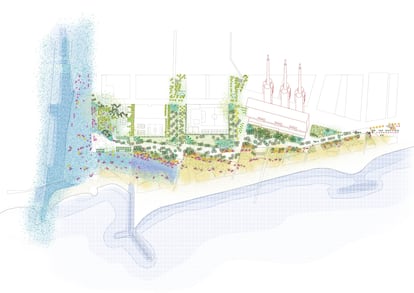Un parque en primera línea de mar, junto a la desembocadura de un río, ante un símbolo de cemento de la Barcelona metropolitana y con una animalada de metros cuadrados: 90.000. Y en un contexto de cambio climático galopante. Es el reto al que se enfrentaban los participantes en el concurso convocado por el Consorcio del Besòs para diseñar el futuro parque litoral frente a las Tres Chimeneas, la antigua central térmica del Besòs que integran las tres torres y la inmensa sala de turbinas, entre los municipios de Sant Adrià del Besòs y Badalona, tocando a Barcelona. El proyecto ganador, que firman los paisajistas de los despachos Landlab y Aldayjover y por la ingeniería Aquatica, asume que el espacio tiene que ser resiliente y hace de la necesidad virtud, con sistemas para afrontarlo.
