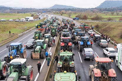 Una tractorada de protesta por el descontrol de la fauna salvaje en Cataluña bloquea el Eix Transversal