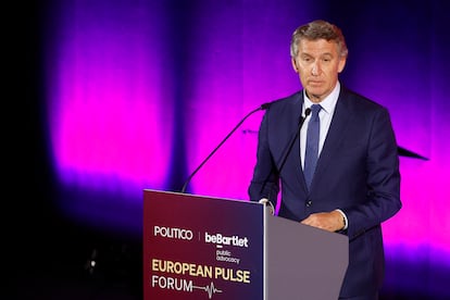 Barcelona ha acogido este viernes el European Pulse Forum, un encuentro al que han asistido políticos, economistas y altos funcionarios europeos para disertar sobre las políticas de la UE. El simposio, organizado por Politico y Be Bartlet en Cosmocaixa, ha reunido al presidente del Gobierno, Pedro Sánchez, y al presidente del PP, Alberto Núñez Feijóo, que en dos discursos han exhibido sus mundos opuestos. Sánchez ha clamado por no permitir una “nueva Gaza en el Líbano” y mantener la suspensión de asociación con Israel por atropellar con sus ataques el derecho internacional. El líder de la oposición ha dirigido sus primeras palabras a condenar “la deriva belicista que recorre el mundo” pero sin citar a Israel, Gaza, Líbano ni Donald Trump.