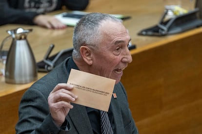 El candidato se ha presentado, además, como una persona cercana, “tranquila”, alcalde aun de Finestrat (Alicante), donde gobierna por mayoría absoluta desde 2015 y no mira las siglas para llegar a acuerdos. En este contexto ha aprovechado para enviar un mensaje a quien apuesta por que será solo un presidente interino, con fecha de caducidad: “Mi intención es que los ciudadanos vean en mí el mismo compromiso que vieron mis vecinos”. La dureza de las propuestas de la extrema derecha asumidas por el PP ha contrastado con el lenguaje y las apelaciones a “la serenidad y la tranquilidad” del candidato durante toda su intervención, la mayor parte de la cual pronunciada en valenciano.