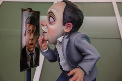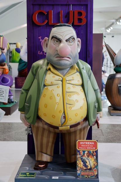 José Luis Ábalos y José Luis Torrente. A la vez. El exministro de Transportes y exsecretario de organización del PSOE está caricaturizado como el personaje de ficción creado y encarnado por Santiago Segura en una de las sagas más taquilleras del cine español. El artista fallero Víctor Navarro ha elegido este icono sórdido, machista y obseso de la prostitución, para retratar satirícamente al expolítico, esculpido sonriente y con una barriga enorme. A su espalda hay una puerta en la que se lee la palabra “Club”. Este de la comisión Marià Benlliure-Séquia de Tormos es uno de los 766 ninots —muñecos, en castellano— expuestos hasta el 15 de marzo que arderán el día 19 de ese mes en la noche de la Cremà.