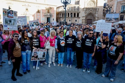 La plaza de la Virgen, junto al Palau de la Generalitat, ha sido el escenario de la movilización mensual convocada por más de 200 entidades sociales y sindicales de la Comunidad Valenciana con el lema Mazón a prisión, que esta vez ha tenido como novedad la participación de representantes de Amama y de 7291 Verdad y Justicia.
