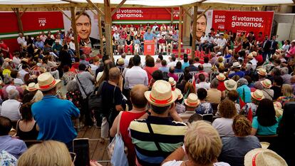 “Una de las grandes fortalezas que tenemos es que uno de cada 200 andaluces milita en el PSOE”, contrapone un miembro de la dirección federal, que asegura que la maquinaria “está más tensa y engrasada” conforme transcurren los días. “Que la derecha se agarre, que estamos solo arrancando, la fuerza de los socialistas se nota por todo el territorio”, afirmó Juan Espadas en un mitin que congregó a más de un millar de militantes y simpatizantes en el castillo del Marqués de los Vélez, en Cuevas de Almanzora (Almería). Todo ese derroche de confianza en las fuerzas propias no habría resultado convincente media hora antes del inicio del mitin, con la mitad de asientos vacíos. “Más separados, que estáis muy juntos y hay que ocupar el banco”, pedía un trabajador del partido a los militantes más madrugadores. Al final no sobró ninguna silla y unas 200 personas se quedaron de pie. “El PSOE es un diésel de los antiguos, de los de apretar a fondo el acelerador”, resumía un alto cargo del Gobierno muy conocedor del partido.