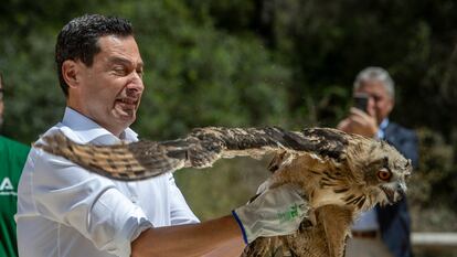 ¿Qué campaña callejera se puede hacer a 40º grados a la sombra, que hasta los vencejos de Córdoba y Sevilla se caen de los nidos? Juan Moreno Bonilla se ha ido al pinar de Chiclana de la Frontera, en Cádiz, a participar en una suelta de aves. El candidato popular ha liberado un búho real antes de insistir en que le gustaría no tener que contar con Vox para gobernar la Junta (“yo quiero unas manos libres”), por lo que ha apelado a los indecisos porque, ha dicho, “todavía quedan muchos volando”. El posible pacto con los ultras de Macarena Olona, que hoy ha lucido dos crucifijos en el pecho durante la procesión del Corpus en Granada, ha sido invocado por Juan Marín para reclamar votos “con sello naranja”, precisamente para evitar a los extremos. Quien más claro lo ha dejado ha sido Inmaculada Nieto, de Por Andalucía. ¿Facilitaría la coalición de izquierdas la investidura de Moreno para que no entrase Vox en la Junta? “Rotundamente no”, ha zanjado en La Sexta. A tres días de los comicios, el socialista Juan Espadas, de visita en una conservera de Huelva, se ha mostrado convencido de que los socialistas “han acertado de pleno” en esta campaña electoral. Tan convencido como se ha mostrado Teresa Rodríguez, de Adelante Andalucía, de la inventiva de sus “farolas humanas” para fabricar, colgar y pasear propaganda electoral.
