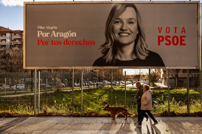 Es semana electoral, con las urnas a solo seis días, y no hay campaña que pueda permitirse el lujo de traslucir abatimiento. Toca sonreír. Más aún si eres Pilar Alegría (La Zaida, Zaragoza, 48 años), que ha convertido su apellido en leitmotiv de una campaña que no le da motivos para el optimismo. La última razón para el disgusto llegó este lunes por la mañana, con la encuesta de 40dB. publicada por EL PAÍS y la SER, que pronostica al PSOE su mínimo histórico en Aragón en las elecciones del domingo. No obstante, la candidata socialista llegaba tan puntual como sonriente a la esquina del barrio de Las Delicias, en Zaragoza, en la que había convocado un acto y donde la esperaban la prensa y un puñado de seguidores prestos a dedicarle palabras de ánimo. Porque, aunque la campaña exige sonrisas, a nadie se le escapa que las cosas no pintan bien y que la candidata necesita un empujón. Rápidamente, entre saludos y parabienes, aflora un tema de plena actualidad, la revalorización de las pensiones. Y Alegría eleva la voz para proclamar una frase que llega a oídos de todos: