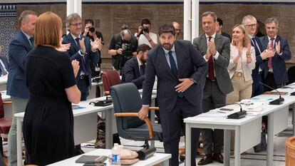El resultado de la votación, ha sido, en realidad, el esperado. En la sesión del viernes, López Miras pidió al líder regional de Vox, José Ángel Antelo, que pusiera hora y lugar para reunirse esa misma tarde, o a lo largo del fin de semana, para alcanzar un acuerdo “de programa”. El encuentro no se ha producido y este lunes, visiblemente enfadado, utilizaba sus 10 minutos de intervención para apelar de nuevo a la responsabilidad de los ultraconservadores y exigir que se antepongan las ideas de programa a la exigencia de entrar en el Gobierno autónomo que plantea Vox. Su portavoz ha contraatacado firmando en directo un documento que le ha dejado en la mesa, con 12 medidas políticas a poner en marcha y la exigencia de ocupar la vicepresidencia del Gobierno y “2 de las 10 consejerías”.