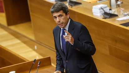 Mazón ha ofrecido un discurso de investidura lleno de llamadas al “diálogo”, “a los puntos de encuentro”, “a la mano tendida”, “a la tolerancia” y “al respeto”, pero ha querido dejar bien patente desde el principio su “más sincero agradecimiento a los 13 representantes en estas Cortes del grupo Vox”. El líder de los populares ha hecho equilibrios para combatir algunas de las críticas por sus cesiones al discurso de Santiago Abascal —incluirá las políticas de igualdad en una vicepresidencia y ha empleado la expresión violencia machista— sin molestar demasiado a su socio. Ha intentando diluir su pacto con Vox al compararlo con un acuerdo con Compromís para la Mesa de las Cortes y con otros movimientos.