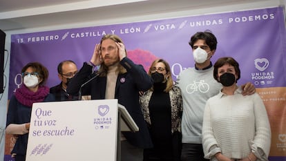 Unidas Podemos (UP) retrocede en Castilla y León. La candidatura encabezada por Pablo Fernández, que confiaba en lograr grupo propio en las Cortes, ha obtenido tan solo un procurador y el 5,08% de los votos en las elecciones de este domingo. Se trata de un resultado insuficiente que ahonda la tendencia a la baja de la formación tras el batacazo de 2019, cuando el partido pasó de 10 a dos representantes. Ni la unión con IU, inédita hasta ahora en la comunidad, ni la presencia de UP en el Gobierno nacional de coalición han servido para sumar apoyos.