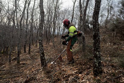 González, también jefa de la Federación de las Asociaciones Forestales de Castilla y León, explica que Forgarero, con fondos del Ministerio de Transición Ecológica, nació en 2023 para administrar activos rurales abandonados colaborando con los lugareños. “Somos muy individualistas, pasar de gestionar tu finca a una gestión conjunta es difícil de entender pero tenemos que dar confianza, generar economía local y aprovechar que los incendios han sensibilizado”, destaca. Primero han elaborado un estado de situación a partir de informes selvícolas, cartografía del uso de los suelos y de las masas forestales y cálculos sobre las zonas arboladas para presentar a los Consistorios diseños de anillos de seguridad que rodeen los pueblos y que, si asoman las llamas, no puedan avanzar. Los alcaldes también preparan ordenanzas para poder intervenir en los suelos abandonados y enviar la factura al dueño, aunque en eso chocan contra las herencias divididas. Ahora lo que toca es implicar: ya han participado 210 propietarios y se han cedido 260 hectáreas, cifra que desean incrementar.