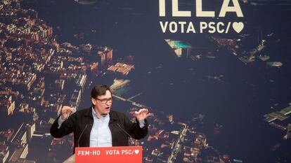 Salvador Illa ha puesto sobre la mesa sus cartas para gobernar. El candidato del Partit dels Socialistes de Catalunya (PSC) en las elecciones del próximo 14 de febrero ha confirmado este lunes que su objetivo es replicar los pactos de coalición que mantienen los socialistas en el Gobierno central y en el Ayuntamiento de Barcelona con la izquierda alternativa de los Comunes y Podemos. “He propuesto una fórmula que ya está funcionando, que no suma la mayoría absoluta, pero que suma suficiente fuerza para tener dimensión y formar gobierno”, ha dicho Illa.