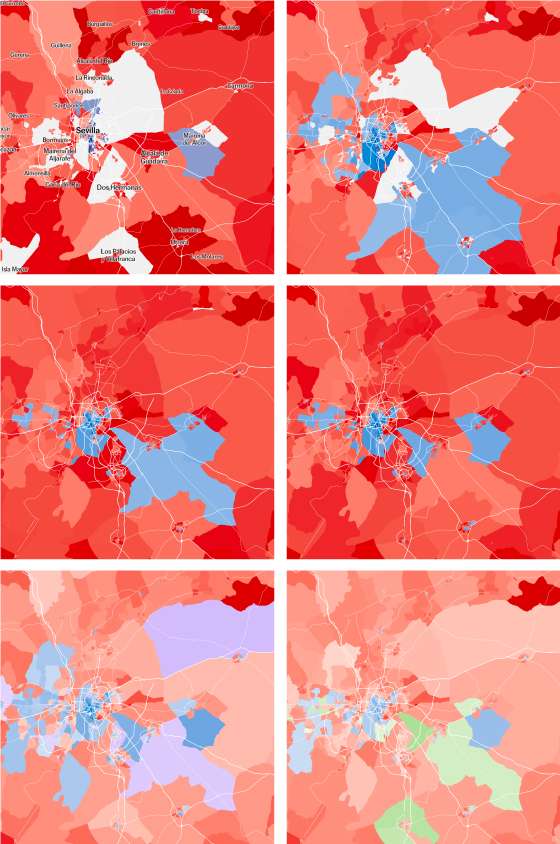 La capital sevillana ha dejado siempre un mapa muy segregado entre populares y socialistas. Incluso durante las mayorías absolutas de Felipe González, había áreas donde Alianza Popular superaba el 70% de los votos.