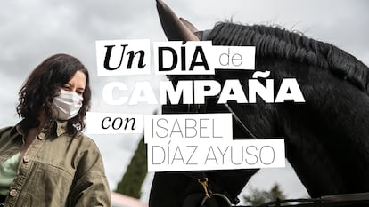 Al aparcar en el centro de equitación, Ayuso saca dos pastillas, una para ella y otra para un periodista de este diario. “Con esta pastilla te puedes acercar todo lo que quieras”, le dice al reportero. ¿A Vox? No, a los caballos: la presidenta de la Comunidad y el reportero son alérgicos. Ayuso toma café con Leguina y Redondo, baja a acariciar varios caballos y a escuchar a los responsables del proyecto terapéutico, habla con chicos que reciben equinoterapia. En otra zona del club, a la candidata le plantan un águila en el brazo, luego un búho enorme. El responsable de la seguridad de Ayuso está a punto de saltar dos veces sobre el búho, al que se le nota incómodo entre cámaras. “¿Qué te ha parecido? Pues hoy es un día tranquilo”, dice la candidata camino a las caballerizas, donde está montado un set para las fotografías de la entrevista con EL PAÍS que le hace Carlos Rosillo.
