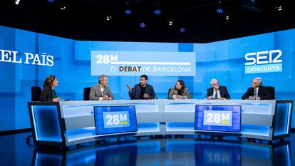 Uno de los cuatro políticos que estuvieron en las instalaciones de Ser Catalunya este lunes será el alcalde o la alcaldesa de Barcelona. El periodista de la Cadena SER Pablo Tallón, presentador del debate junto a la periodista de EL PAÍS Ana Pantaleoni, comenzó con esta idea el debate entre candidatos. Ada Colau (Barcelona en comú), Jaume Collboni (PSC), Ernest Maragall (ERC) y Xavier Trias (Junts) han debatido durante más de hora y media sobre los temas que preocupan a los barceloneses. La vivienda, la movilidad, la seguridad, la situación económica o los posibles pactos entre fuerzas políticas han sido asuntos centrales del debate. En el vídeo que encabeza esta noticia, un resumen del encuentro con los momentos más interesantes en los que los cuatro han confrontado posiciones políticas.