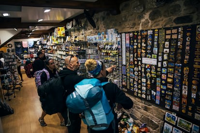 El afán por llevarse algún recuerdo del Camino ha alcanzado los estudios de tatuaje, que siguen la estela iniciada por el ecuatoriano Ethan Clay, célebre estampador de pantorrillas y brazos con símbolos jacobeos —desde 40 euros— en la avenida Rosalía de Castro. También se sumó al tirón la propia Catedral, que acoge intramuros una tienda-librería con souvenirs “oficiales” por la que hay que pasar durante el recorrido: “A Jesús no le gustaría. Es el mercader dentro del templo”, critican los comerciantes de la ciudad.
