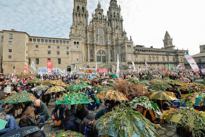 La plataforma Ulloa Viva, que ha impulsado la movilización contra la factoría junto a la Plataforma de Defensa da Ría de Arousa, ha convocado la manifestación de este domingo porque advierte de que el proyecto no está muerto del todo. Miles de personas han secundado su llamamiento con una marcha que ha desembocado en la plaza del Obradoiro, justo un año después de que otra manifestación contra la macrocelulosa desbordase este espacio. Se cumplen también dos años de que los promotores de la celulosa solicitaron el permiso para captar del río Ulla hasta 46 millones de litros de agua al día, uno de los mayores impactos ambientales que señalan los ecologistas, pero la Xunta todavía no se lo ha otorgado. “Creemos que llegó el momento de que Altri renuncie públicamente a su proyecto. Es más, le exigimos que lo hagan, porque está claro que no son bienvenidos”, emplaza Manuel Santos, portavoz de Greenpeace en Galicia.