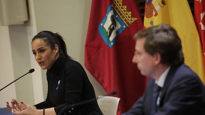 Begoña Villacís y José Luis Martínez de Almeida, en la rueda de prensa para periodistas a través de internet. En vídeo, declaraciones de Villacís.