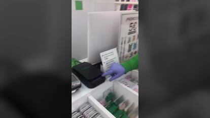 El gozo en un pozo. La nueva normalidad también es la explicación de un vigilante antes de entrar a cualquier comercio. “Por aquí, por aquí”. “Tome, la mascarilla”. “Coja los guantes”. “Aquí tiene el gel”. Lo que hacemos al salir de casa, ahora se hace en cualquier local de menos de 400 metros cuadrados o aquellos más grandes que acoten su superficie a ese límite. La Comunidad de Madrid inicia este lunes una fase 0 con las medidas de alivio que anunció el Ministerio de Sanidad este viernes: comercios que pueden atender a los clientes sin necesidad de cita previa y respetando un aforo limitado al 30%.