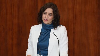 “La principal reducción de impuestos, la rebaja de medio punto en todos los tramos del IRPF, se hará en esta legislatura”. El principal anuncio que ha hecho este lunes Isabel Díaz Ayuso en política fiscal ya era conocido y sigue sin tener fecha de aplicación. La reforma, comprometida por PP y Cs en su acuerdo de Gobierno, de julio de 2019, ya fue dejada en pausa esta primavera, como publicó EL PAÍS en abril. Nada ha cambiado desde entonces: las gravísimas consecuencias económicas de la pandemia, que se llevará por delante 30.000 millones de euros en Madrid, el 12,5% de su PIB, no parecen dejar margen ahora mismo para activar la medida.