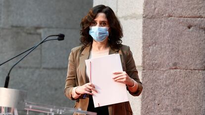 A primera hora de este jueves, el equipo de comunicación del edificio principal de la Puerta del Sol lanzaba un mensaje. “Ayuso será entrevistada a las 9.05 en la cadena Cope”. Minutos antes, el consejero de Justicia, Enrique López, y la consejera de Presidencia, Eugenia Carballedo, ya habían hablado en Onda Madrid y en EsRadio. Los dos lanzaron el mismo discurso. “Todo lo que pasa en Madrid genera polémica. Sí se puede cambiar el decreto. La petición de la presidenta es de sentido común”, dijo López que, inmediatamente después, acudió también al Programa de Ana Rosa, de Telecinco. “Estamos a la espera de que el Gobierno nos dé una respuesta oficial a la carta enviada por Ayuso. La decisión de cerrar Madrid se adoptará en función de la respuesta”, dijo. Casi a la vez, la consejera Carballedo hacía también lo propio en Espejo público, de Antena 3: “Cerrar Madrid más allá del puente de Todos los Santos no tiene sentido”.