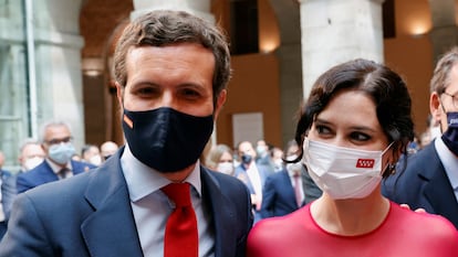 La presidenta madrileña, al jurar su cargo: “Nunca hemos tenido miedo a la libertad, solo a perderla” | Casado acompaña a Ayuso en su toma de posesión | La presidenta fue investida en el cargo el viernes con los votos de PP y Vox tras un tenso pleno en la Asamblea