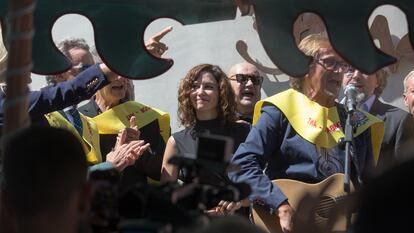 La presidenta de Madrid carga contra Sánchez y el independentismo en un acto estrambótico de la plataforma antinacionalista en el que se premia al torero Ortega Cano, al presentador Javier Cárdenas, o a Ramón Arcusa, del Dúo Dinámico
