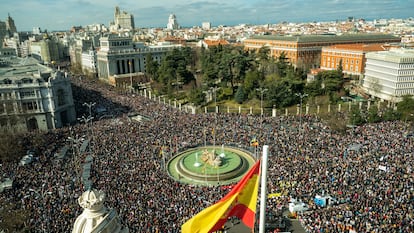 Así, uno a uno, con gritos, pancartas, camisetas, tambores y timbales, miles de personas han abarrotado el centro de Madrid durante una protesta que, según la Delegación del Gobierno, reunió a más de 250.000 personas. Al pulso que sostiene el personal sanitario con las autoridades, miles de madrileños respondieron con una de las movilizaciones más multitudinarias de los últimos años después de sacar por segunda vez en menos de tres meses a más de 200.000 personas a la calle. En un momento de éxtasis, los organizadores de la marcha incluso pronunciaron la palabra “millón” para cuantificar el tamaño de la manifestación. En ese momento, cuatro columnas de manifestantes llegaban simultáneamente a la plaza de Cibeles desde Alcalá, Gran Vía, Atocha y Colón.