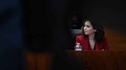La presidenta de la Comunidad de Madrid, Isabel Díaz Ayuso, ha avanzado que el PP apoyará la derogación de la ley trans regional que plantea Vox en el pleno de la Asamblea de este jueves, aunque ha puntualizado que no dará tiempo de llevarla a cabo hasta la próxima legislatura. Ese compromiso, que da por hecho que los conservadores mantendrán el poder tras los comicios del 28 de mayo, refleja la lucha que mantienen los dos partidos de derechas por seducir al mismo electorado. También, que Vox ha hecho mella en la armadura del PP con un tema que incomoda en las filas conservadoras. Por eso, Ayuso ha entonado este jueves un sí, pero no: se cambiará la ley, pero no ahora, y preferentemente por iniciativa de su partido, y no del de Rocío Monasterio. Es un giro de 360 grados. Ayuso lleva diciendo desde 2019 que hay aspectos de esta ley que quiere reformar. Este jueves, por lo tanto, ha dado un vuelco completo para acabar donde estaba desde el principio. Entretanto, ha calificado de “moda” la defensa de los derechos trans.
