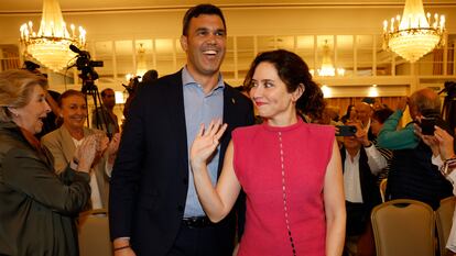 Todo arranca el jueves, durante un mitin en la capital navarra que calienta una intervención del presidente del PP regional, Javier García. Díaz Ayuso es recibida con un ramo de flores, una tromba de aplausos y decenas de manos tendidas en busca del contacto de la suya, igual que si fuera una estrella del rock. Ocurre en un salón de actos que parece quedarse pequeño, y cuando la presidenta de Madrid se sube al escenario para intervenir, lo hace sin la diplomacia ni la mano izquierda que se suele emplear en las relaciones institucionales. Es, por lo tanto, un mitin del PP con una política del PP. Y habla con el tono consecuente, haciendo un paralelismo entre el Gobierno nacional de Pedro Sánchez y el navarro de María Chivite, a los que dirige sus críticas más aceradas por apoyarse en fuerzas independentistas.