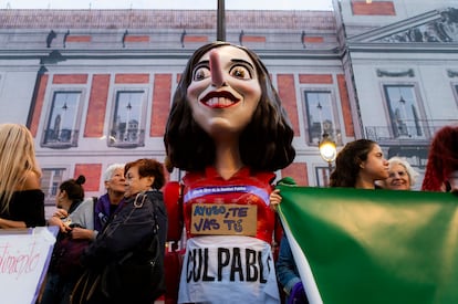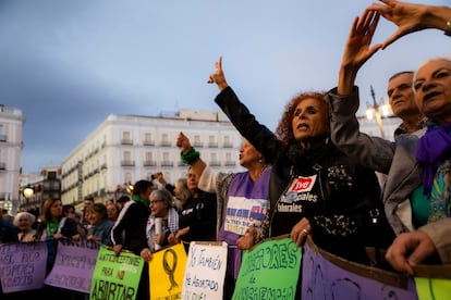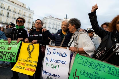 Doscientas personas, mujeres en su mayoría, se concentran desde las 19.30 en la Puerta del Sol a favor del aborto libre en la sanidad pública “sin información falsa” bajo el lema “No nos vamos. Ayuso, nos quedamos”. Participan en una protesta que convoca la Comisión por el Derecho al Aborto de Madrid. Exigen un registro de objetores de conciencia de manera inmediata. “Nadie tiene derecho a decidir sobre nuestros cuerpos”, grita Rosario Arcas, de 75 años. “Llevo 50 años luchando por esto”, prosigue tras contar que fue integrante del Tren de la Libertad, la primera gran movilización feminista del siglo XXI, en 2014.