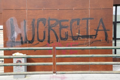 Conducen un Talbot Horizon. Luis porta su pistola reglamentaria. Víctor, un cuchillo de monte. Felipe, una navaja y un punzón. Casi 35 años después, un solitario grafiti recuerda a su víctima en el corazón de Aravaca. “Lucrecia vive”, se lee allí donde un día la alcaldesa Manuela Carmena (Ahora Madrid) permitió que se pintara un mural con el rostro de la asesinada, que luego fue tapado por el actual gobierno del PP con la excusa de unas obras para mejorar el aislamiento del edificio que decoraba. Este jueves hay un ramo de flores junto a la frase. Está justo debajo de la cara serigrafiada de Lucrecia, donde se marchita poco a poco. Del mural original no queda ni rastro. Otra herida abierta.