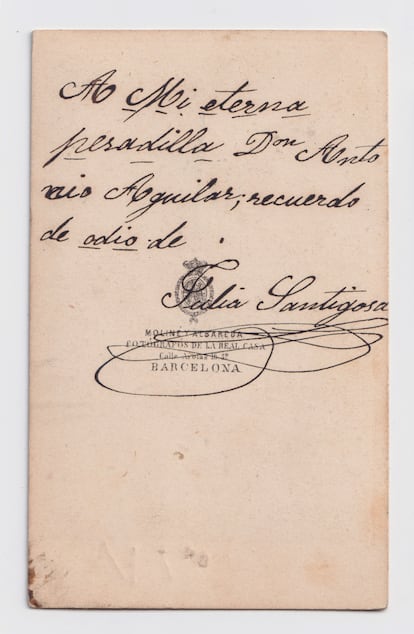 “A mi eterna pesadilla Don Antonio Aguilar, recuerdo de odio de Julia Santigosa”