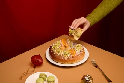 Hay roscones que decoran vitrinas y otros que se comen. El de Madreamiga pertenece al segundo grupo. No lleva fruta de colores, ni nata industrial, ni adornos de azúcar. Solo masa madre, ralladura de cítricos, agua de azahar y una naranja confitada que no se queda en el plato.