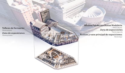 En las obras de rehabilitación del edificio se afanan unas 300 personas coordinadas por la constructora Fernández Molina, siguiendo el proyecto del arquitecto Fernando Espinosa de los Monteros. Dispone de más de 4.000 metros cuadrados y quiere ser un centro difusor de la cultura, las artes y las humanidades impulsado por la Fundación Mutua.