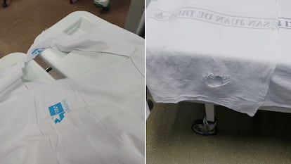 Otra compañera suya de 54 años, que también prefiere no revelar su identidad por el mismo motivo, denuncia problemas con el stock de pijamas. “No todos tienen uno limpio cada día”, reconoce. Reporta que las sábanas llegan con pelos y manchas de sangre: “Ya lo hemos denunciado a la dirección de enfermería. La Consejería de Sanidad nos exige criterios de humanización, pero deja sin lo más básico a los enfermos”.