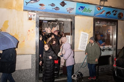 La cola llega ya hasta la calle. En las paredes exteriores se anuncian las ofertas. Hoy, el kilo de salmonete está a 11,99 euros; el de rape, a 19,99.
