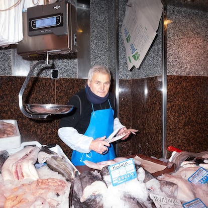 Su puesto siempre ha estado junto a la única ventana del local. Allí, con sus dos cuchillos, sus tijeras y su escamador, coloca al alcance de la mano los pescados que más se venden -merluza, salmón, gallo o lubina dorada-. Cuando el cliente pide, inicia un movimiento de manos hipnótico. “Hay piezas que te hacen ilusión. Por ejemplo el otro día una señora se llevó un besugo y una pescadilla que ya les había echado yo el ojo y le recomendé que se las llevará porque le iban a salir muy bien”, dice.