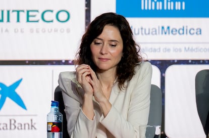 Una presidenta muy comedida ha participado este viernes en un evento médico en el que ha defendido la sanidad madrileña como la mejor de España, y de Europa, como ha llegado a decir en otras ocasiones. Tras su intervención en la Asamblea de Madrid este jueves, durante la cual hizo cantar a su bancada “Son us-te-des unos tri-stes” en tono de burla hacia la izquierda, Isabel Díaz Ayuso ha evitado entrar en política y polémicas directamente, a pesar de que recientemente ha abierto una nueva guerra con el Ministerio de Sanidad por la ley que promueve el Gobierno de Pedro Sánchez para ponerle coto a la privatización del sector sanitario. Ayuso se ha enfrentado otra vez a la ministra Mónica García ―la negativa a crear un registro de médicos objetores del aborto ha sido la más reciente― porque, como dice la presidenta, desde el Gobierno central no quieren otra cosa que “destruir la sanidad madrileña”. Y no es para menos: aunque la ley tiene muy pocas esperanzas de vida cuando llegue al Congreso, de aprobarse, el grandísimo paradigma de su mandato, el sistema sanitario público-privado, podría venirse abajo.