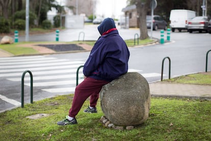 Es un día gris de invierno y en Colmenar hay dos grados menos que en Madrid. El megáfono se activa con un pitido y una voz lejana anuncia que los residentes ya se pueden apuntar para participar en la fiesta de Carnaval que organiza el centro. Marcelo apura las últimas caladas, apaga la colilla y sube a su habitación en la sexta planta para buscar el cartel que se pega a la espalda cada día que baja a comer. “Esta comida es maltrato”, se lee.