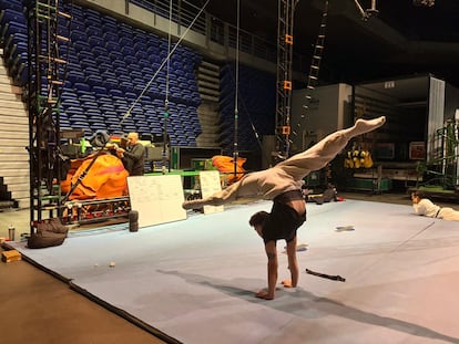 Un miembro del Circo del Sol ensayando en el Movistar Arena.