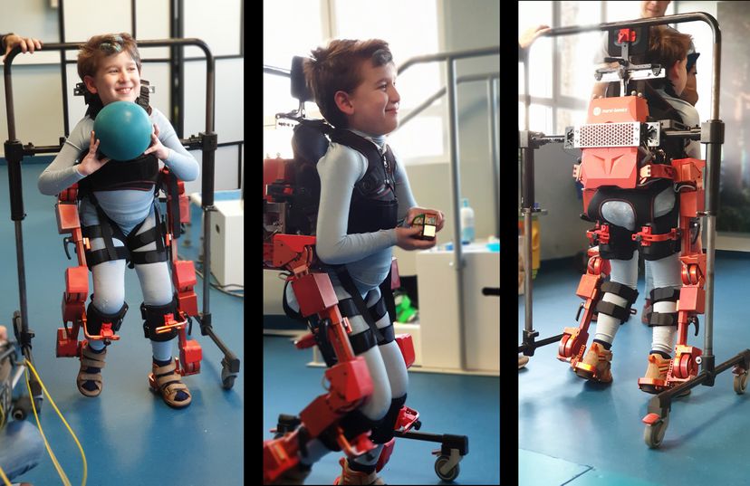 Este niño de 9 años padece atrofia muscular espinal y nunca ha podido ponerse en pie. Gracias al primer exoesqueleto infantil del mundo, diseñado por la ingeniera española Elena García Armada, hoy puede dar pequeños pasos