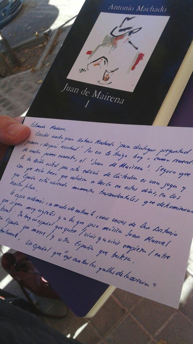 - Pablo IglesiasHace 6 diassRT @ahorapodemos: .@Pablo_Iglesias_ a su llegada a la Moncloa le regala el libro "Juan de Mairena" de Antonio Machado a @marianorajoy https…