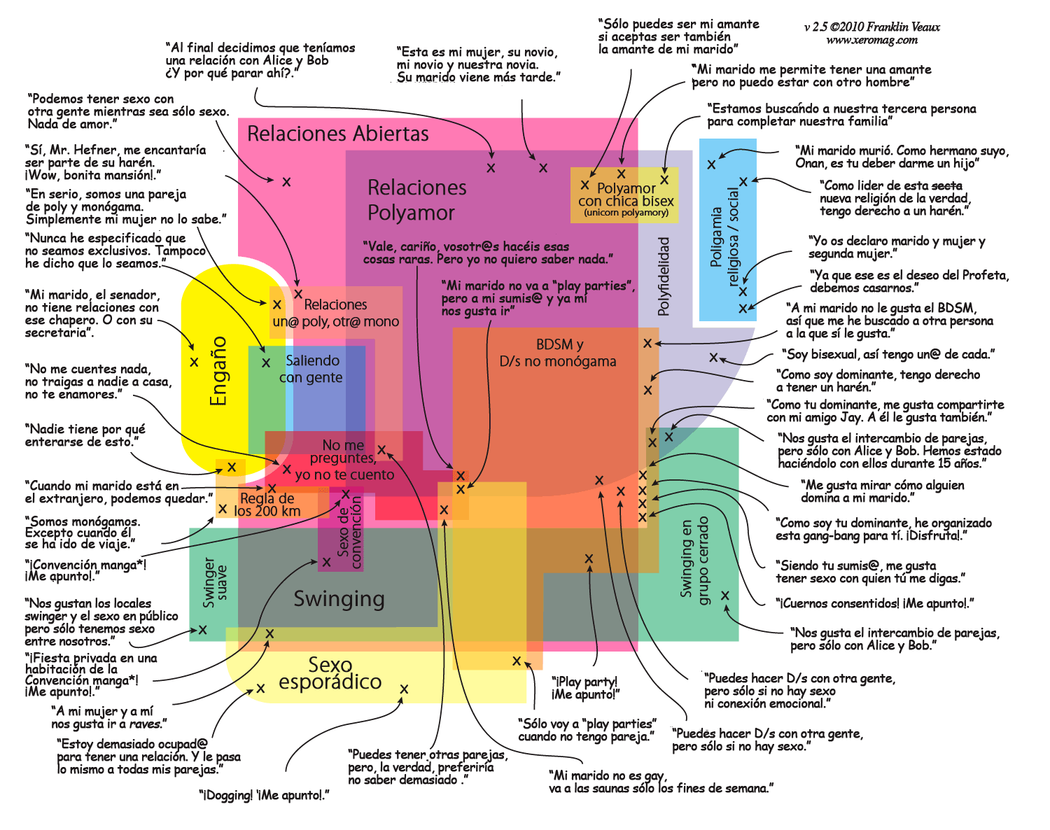 El test, el gráfico y estas definiciones están inspiradas en el mapa del activista y educador poliamoroso Franklin Veaux, mucho más amplio. Puedes verlo en inglés aquí, y en español, en una versión anterior, aquí.