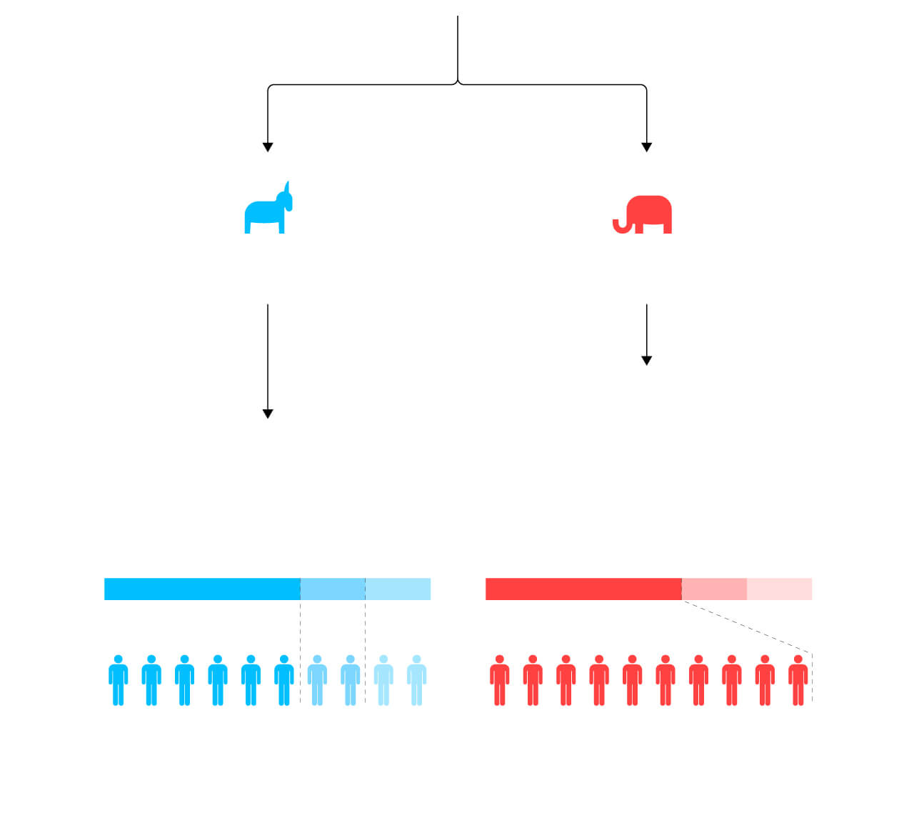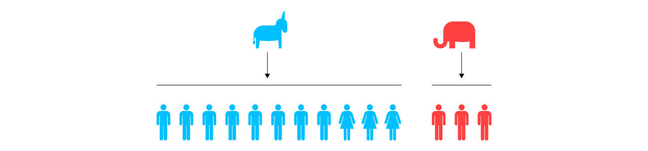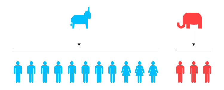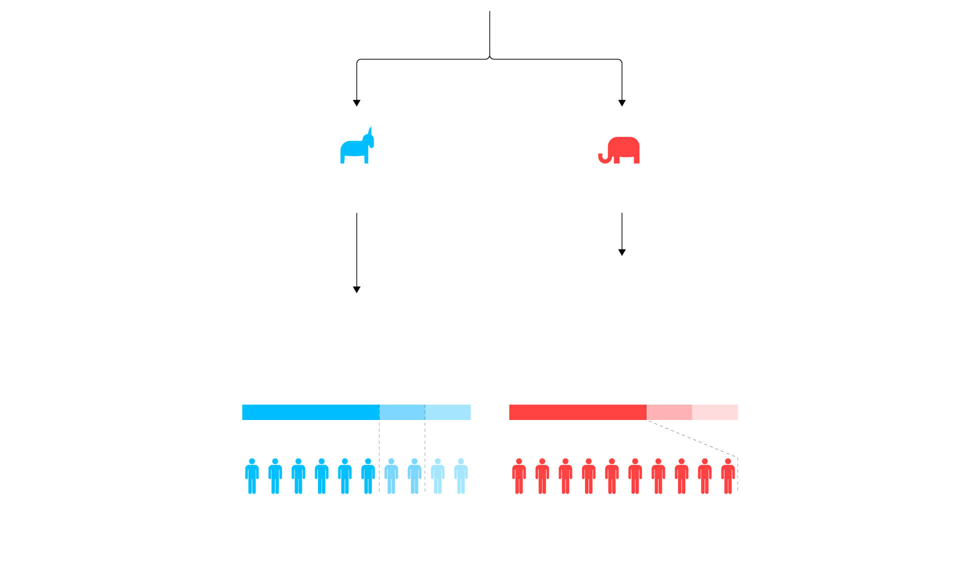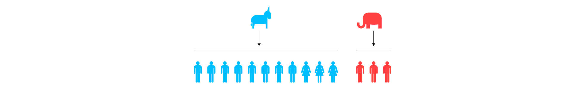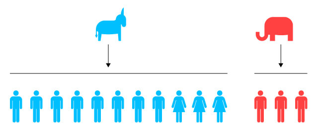 Pongamos por caso que en New Hampshire los demócratas tienes 24 delegados y las votaciones establecen que 15 delegados voten a un candidato, 7 a otro y 2 a otro.