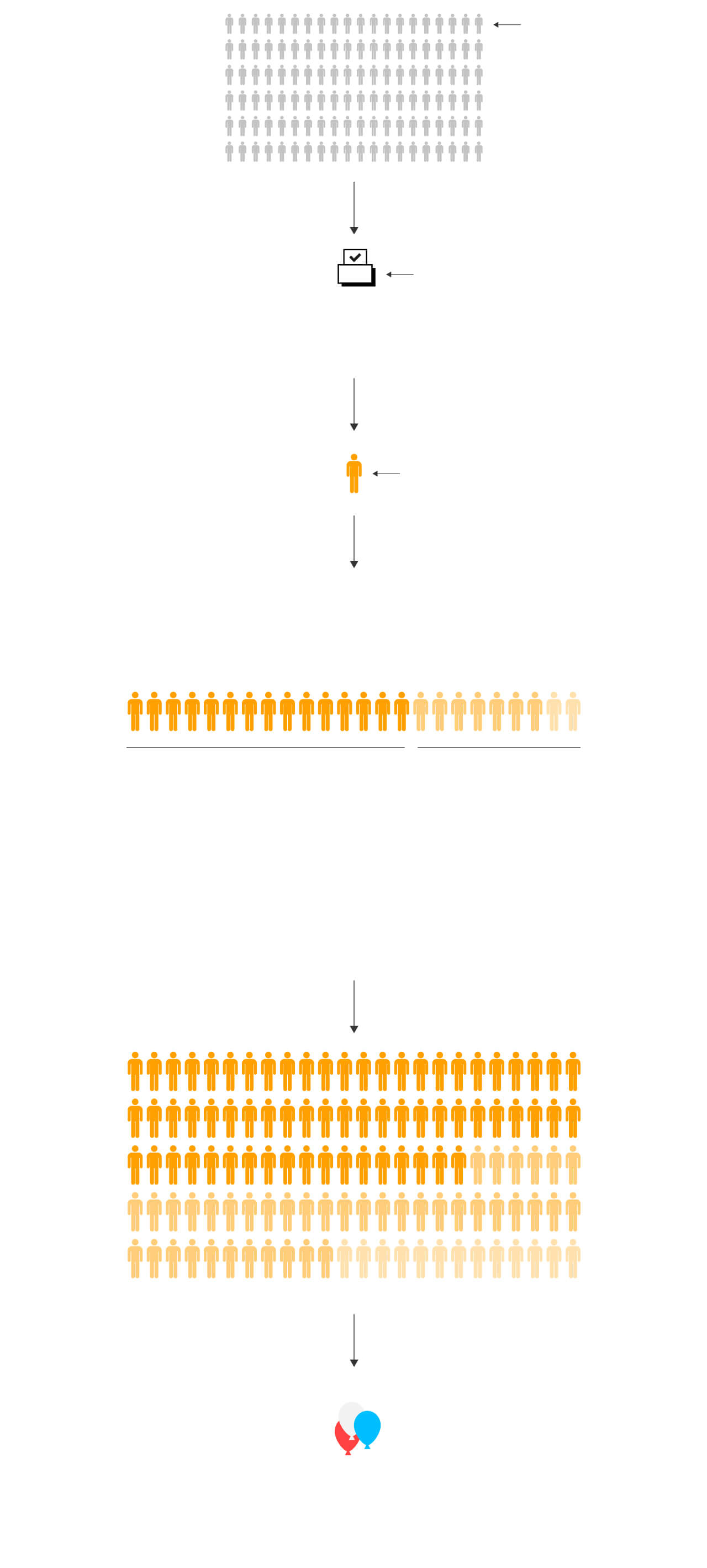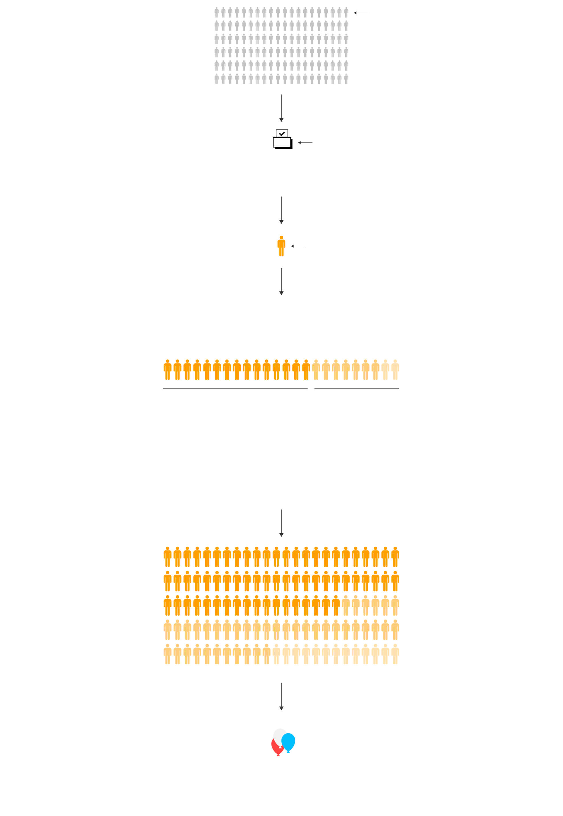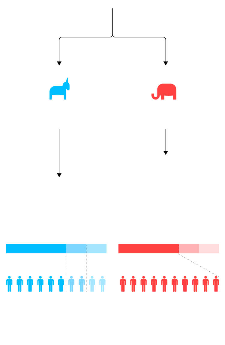 Pongamos por caso que en New Hampshire los demócratas tienes 24 delegados y las votaciones establecen que 15 delegados voten a un candidato, 7 a otro y 2 a otro.
