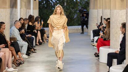 “Yo sé que a alguien español esto le puede parecer un cliché, y pido disculpas de antemano. He venido mucho a España, concretamente a Barcelona, y no he podido evitarlo”, comenta Ghesquière de un desfile que, explica, “tiene de todo y todo junto: formas arquitectónicas de Bofill, que me obsesiona, trencadís de Gaudí... pero también encaje negro, siluetas de Zurbarán y guiños a Velázquez”, añade. Lo que no explica es que todos estos guiños están pasados por su propio lenguaje, curtido durante 15 años en los archivos de Balenciaga, que supo llevar con maestría al presente. El lenguaje de Ghesquière son los drapeados que parecen fluir con el movimiento, las siluetas (lo más difícil de conseguir en el diseño) tan ajenas al resto como reconocibles para cualquiera, es que el encaje sea tridimensional, que un sombrero cordobés parezca vanguardista o que los colores tierra sean casi atemporales. Ghesquière, que se confiesa admirador de Sybilla (“increíble como ha llevado esa idea de rigor tan española a lo contemporáneo”, dice) y que ha buceado media vida en los archivos de Cristóbal Balenciaga, el gran icono de la moda española, no cae en tópicos ni en ideas manidas, reinventa el folclore con los ojos de alguien que mira de forma única. Por algo es de los pocos diseñadores que se establecen durante más de una década en casas de prestigio, algo que equivaldría casi a medio siglo fuera de este sector hambriento de cambios.