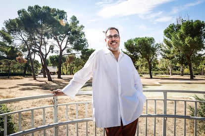 Cuando le quedaban dos asignaturas para acabar la carrera de Psicología en la Universidad de Salamanca, Daniel Figuero (Aranda de Duero, Burgos, 45 años) se puso a trabajar para pagar el alquiler del apartamento donde vivía. “Entré en Sephora y ya no salí de ahí hasta 23 años después”, cuenta entre risas. Se dio cuenta de que mientras sus amigas solo encontraban becas y empleos mal pagados, él podía sufragar los gastos de aquel apartamento y, además, estar cerca del mundo de la cosmética, que siempre le había encantado. De Sephora pasó a Yves Saint Laurent como maquillador, luego vino Tom Ford y hace 10 años recibió la llamada de Dior para ser uno de sus formadores de perfumistas. “Está mal que yo lo diga, pero desde ahí hice un carrerón”. Lleva dos meses viviendo de nuevo en Madrid, fichado por Loewe como Training Manager. Y sigue promocionando Contraperfume (Superflua), un libro que habla de la industria en la que trabaja pero que tiene más de sí mismo.