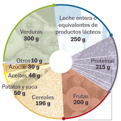 ¿Cómo es esta dieta? Plantea un consumo diario medio de 2.373 kilocalorías y es flexitariana: lo que proponen es una variedad de alimentos integrales o mínimamente procesados que en su mayoría son de origen vegetal.