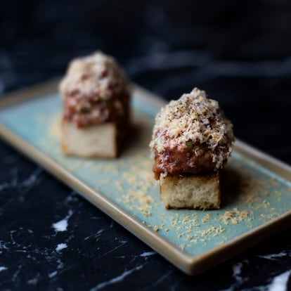 - La barra de la Tasquería. El cocinero Adrián Collantes defiende una oferta de tapas, raciones y platos cuya seña de identidad es la casquería. En Madrid.