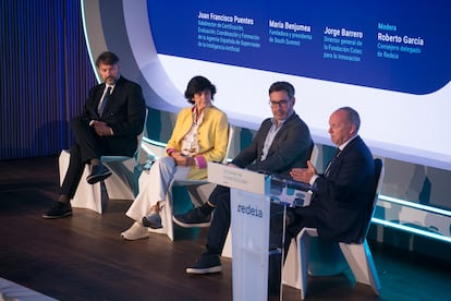 El capital tecnológico y el valor de la innovación se abordó de pleno en la primera de las sesiones. Roberto García, consejero delegado de Redeia, fue el encargado de abrir el diálogo. García recordó la urgente reflexión sobre regulación, seguridad ética de la inteligencia artificial y “necesidad de un ecosistema emprendedor robusto que permita escalar las soluciones limpias”. Intervinieron Juan Francisco Puentes, subdirector de Certificación, Evaluación, Coordinación y Formación de la Agencia Española de Supervisión de Inteligencia Artificial, desde la perspectiva regulatoria y asociativa; María Benjumea, fundadora y presidenta de South Summit, como referente del ecosistema emprendedor, y Jorge Barrero, director general de la Fundación Cotec para la Innovación, con la mirada de la política de innovación.